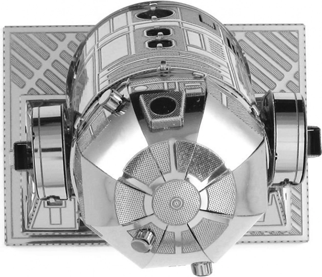 Precyzyjny laser odwzorowuje delikatne panele, łączenia i tekstury, dzięki czemu miniaturowy R2‑D2 wygląda jak filmowa replika w skali do gabloty.