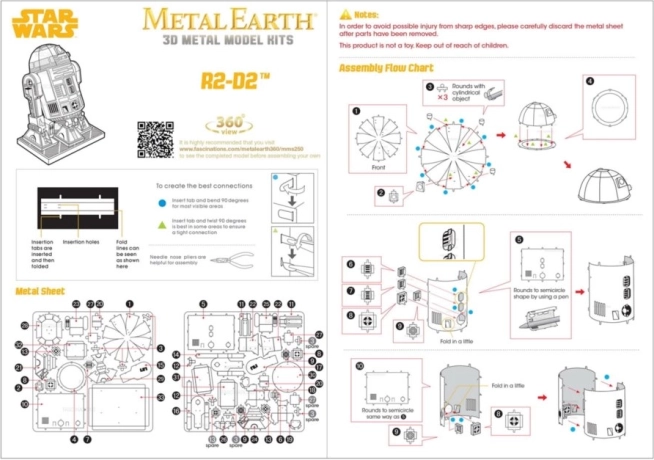 Ten dopracowany 3D metalowy model R2‑D2 z serii Metal Earth składa się z stalowych blaszek, z których uformujesz realistyczną miniaturę ikonicznego droida. Konstrukcja bez kleju wykorzystuje sprytne zamki z wyginanymi języczkami, dzięki czemu powstaje solidny i elegancki model o autentycznym wyglądzie.