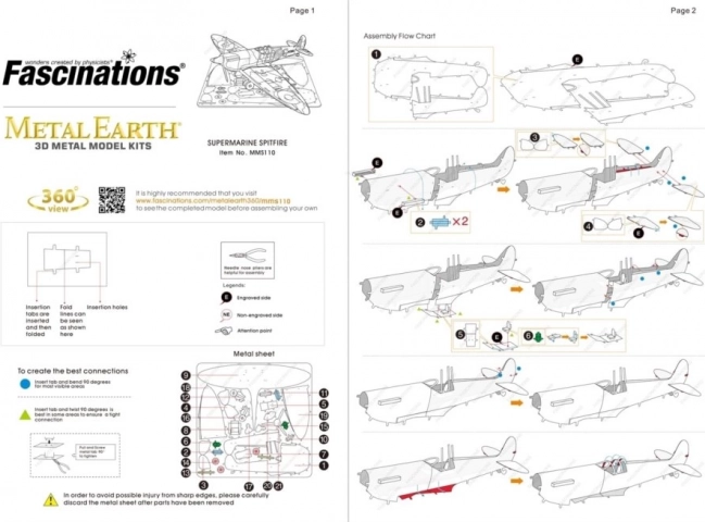 Metal Earth oferuje pięknie dopracowane 3D puzzle, które po ukończeniu tworzą realistyczny model samolotu Supermarine Spitfire. Budowa wymaga odrobiny cierpliwości i staranności, ale efekt jest imponujący. Model wykonany jest z laserowo grawerowanych stalowych arkuszy, co gwarantuje dokładność i szczegółowość każdego elementu.
