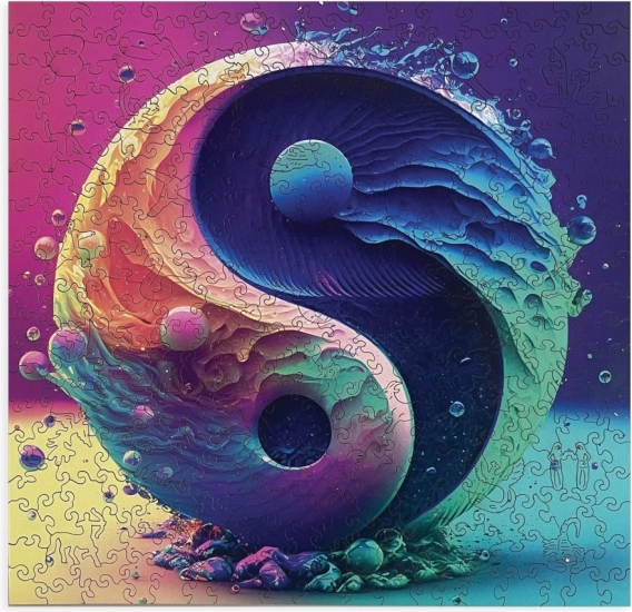 Puzzle zachwycają nowoczesnym i kolorowym motywem Yin Yang, symbolizującym równowagę i harmonię. Przejścia od turkusu po fiolet stanowią odświeżającą ucztę dla oczu.