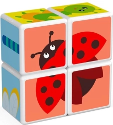 Dzięki magnesom na wszystkich sześciu stronach kostek budowanie jest intuicyjne i satysfakcjonujące nawet dla najmłodszych. Zabawa naturalnie rozwija umiejętności w duchu STEM – wspiera ciekawość, logikę i rozumienie relacji w przestrzeni. W zestawie znajdują się także 3 dwustronne karty z ilustracjami ułatwiającymi układanie.