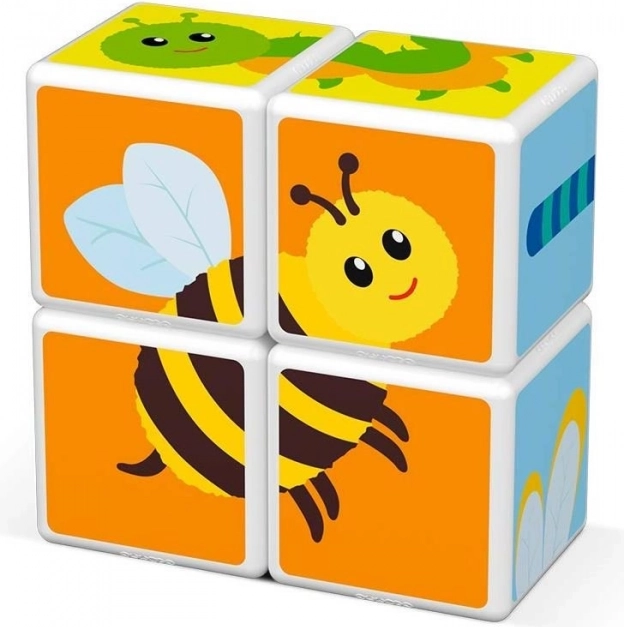 Kostki przyczepiają się ze wszystkich sześciu stron, więc dzieci z łatwością tworzą kształty i obrazki, doświadczając natychmiastowego sukcesu podczas zabawy.