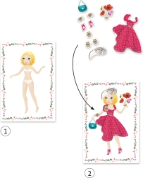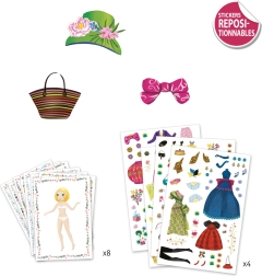 Zestaw naklejek Djeco Projektantka mody zapewnia godziny zabawy dla dzieci od 4 lat. Na sztywnych kartach z laleczkami można wielokrotnie przyklejać odczepiane naklejki, więc każdy strój może wyglądać inaczej. Dzieci ćwiczą gust, wyobraźnię oraz koordynację ręka–oko, a przy tym świetnie się bawią.