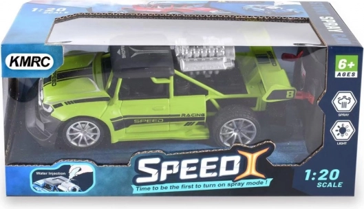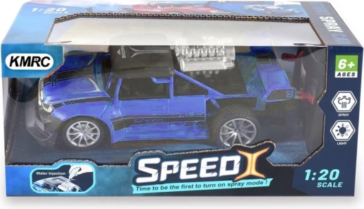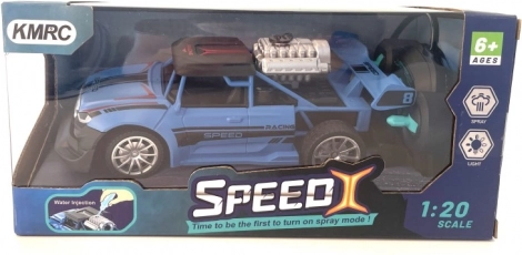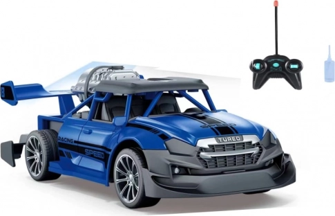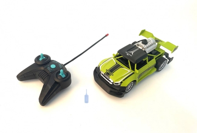 Zdalnie sterowane auto jest dostępne w różnych kolorach - niebieskim, zielonym i czerwonym. Do funkcjonowania wymaga baterii, które nie są częścią opakowania.