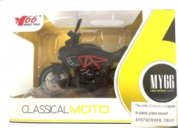 Nakręć i jedź tym realistycznym plastikowym motocyklem w skali 1:14. Idealny dla kolekcjonerów lub jako element dekoracyjny.