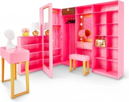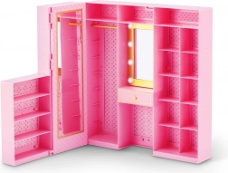 Zestaw jest idealny do eksponowania miniaturowych modowych elementów, miksowania stylizacji i zabawy w stylistkę. Wysokiej jakości wykonanie z tworzywa, eleganckie złote detale i bogate wyposażenie sprawiają, że to świetny prezent dla małych miłośniczek mody.