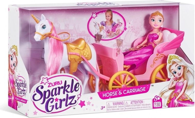 Odkryj magiczny świat fantazji z zestawem SPARKLE GIRLZ lalka księżniczka z jednorożcem i powozem. W opakowaniu znajdziesz elegancką księżniczkę w błyszczącej różowej sukni, czarującego białego jednorożca z różową grzywą oraz różowo‑złoty powóz na nieskończone opowieści. Długie włosy do czesania, odłączany powóz oraz możliwość wymieniania ubranek i akcesoriów z innymi lalkami Sparkle Girlz zapewniają godziny kreatywnej zabawy. Odpowiednie od 3 lat.