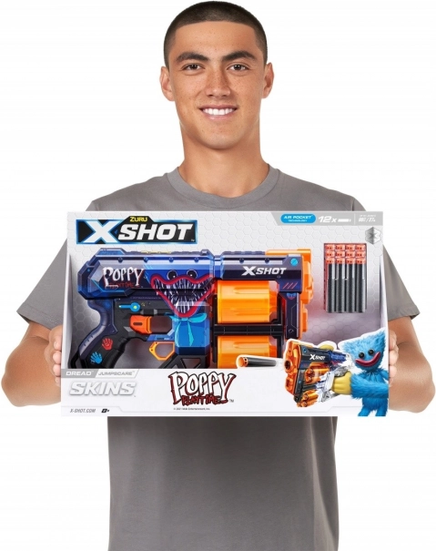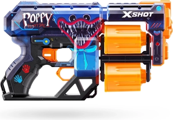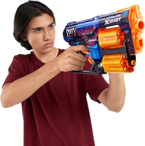 Blaster X-SHOT Skins Dread Jumpscare zapewnia maksimum zabawy. Lekka i wytrzymała konstrukcja, wyrazista grafika oraz intuicyjne ładowanie czynią z tego pistoletu idealny wybór do szybkich starć w domu i na dworze. Obrotowy bęben umożliwia płynne wystrzeliwanie strzałek jedna po drugiej, gwarantując tempo, które narzucasz Ty.
