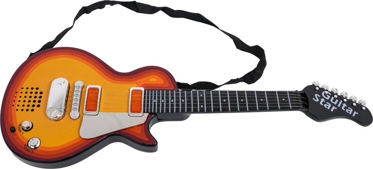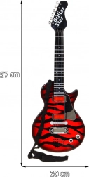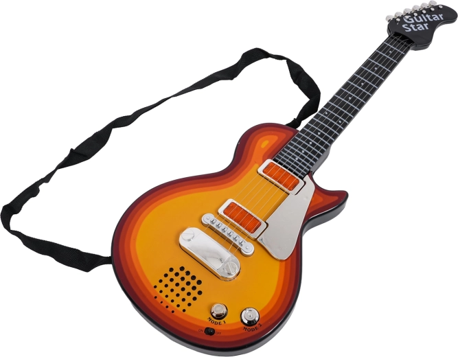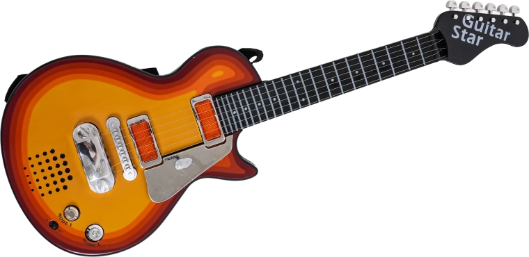 Dzięki odchudzonej konstrukcji i wygodnemu paskowi instrument jest idealny dla dzieci od 3 lat. Gitara posiada certyfikat CE, co czyni ją bezpiecznym i atrakcyjnym wyborem na pierwszy kontakt z muzyką. Zasilanie zapewniają baterie 3× AA (brak w zestawie).