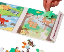 Żywe kolory nie tylko upiększają zabawkę, ale także uczą dzieci rozpoznawania i nazywania różnych kolorów, co jest kluczowe dla ich rozwoju kognitywnego. Dzięki układaniu puzzli dzieci łatwiej przyswajają nowe informacje o zwierzętach i ich środowisku, co czyni naukę przez zabawę skuteczną i przyjemną. Kolejnym atutem jest praktyczny składany format, który umożliwia łatwe przechowywanie i przenoszenie, dzięki czemu zabawka może być z dzieckiem prawie wszędzie - na rodzinnych spotkaniach, podczas podróży samochodem czy w restauracji. Jest to nieocenione rozwiązanie dla rodziców, którzy chcą zapewnić swoim dzieciom rozrywkę w różnych sytuacjach.