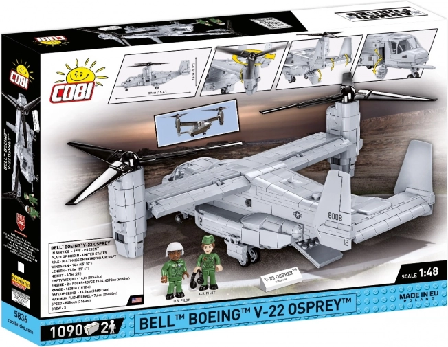 Ten model samolotu Bell-Boeing V-22 Osprey to wyjątkowa zabawka dla miłośników techniki wojskowej i modeli lotniczych. Zawiera 1090 klocków, które pozwolą ci stworzyć szczegółową i realistyczną kopię tego futurystycznego, wielozadaniowego maszyny. Jego obrotowy system napędowy umożliwia obracanie gondoli silnikowych, co daje możliwość pionowego startu i następnie przejścia do lotu poziomego.