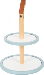 Stabilna, dwupiętrowa konstrukcja zapewnia dużo miejsca do eksponowania deserów. Skórzany uchwyt ułatwia przenoszenie całego zestawu.