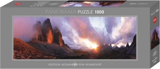 Panoramiczne puzzle marki Heye przedstawiają zachwycający widok włoskich gór Tre Cime. Seria Alexander von Humboldt Edition słynie z wysokiej jakości i szczegółowych obrazów, które zapewniają rozrywkę dla całej rodziny.