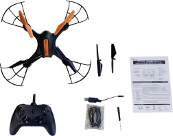 W pudełku znajdziesz wszystko, czego potrzebujesz: pilot zdalnego sterowania, ładowarkę USB, zapasowe śmigła, śrubokręt i instrukcję. Wystarczy naładować akumulator i można startować.