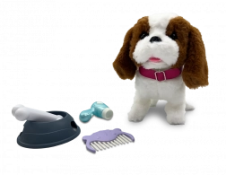 W zestawie znajduje się grzebień, miska na jedzenie i kosteczka, dzięki którym dzieci wypróbują opiekę nad pupilem – od karmienia, przez czesanie, aż po przytulanie. Zabawa z pieskiem Łapką naturalnie wspiera wyobraźnię, umiejętności społeczne, empatię oraz małą motorykę.