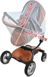 Moskitiera jest zaprojektowana do łatwego zakładania na każdy typ wózka - od głębokich po sportowe wózki.