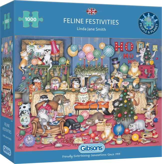 GIBSONS Puzzle Kocie święta 1000 elementów, układanka dla miłośników puzzli i kotów. Wymiary po ułożeniu: 68 × 49 cm.