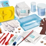 Zawartość zestawu: forma, podłoże do modelu papierowego, specjalne bibuły, rękawice ochronne, pojemnik z wieczkiem 100 ml, pojemnik z wieczkiem 50 ml, pęseta, szpatułka, pipeta, barwniki, plastikowa miseczka, pojemnik na kryształy, próbki skał, pędzelek, zabezpieczenie do probówek, probówka z pokrywką, woreczki z siarczanem glinowo-potasowym, woreczek z gipsem, woreczek z diwodorofosforanem potasu, woreczek z diwodorofosforanem amonu, probówka z glinianem strontu, ilustrowany poradnik (CZ, SK, PL, HU).