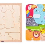 Ta drewniana układanka z egzotycznymi zwierzętami to doskonałe pierwsze puzzle dla najmłodszych. Duże, kolorowe elementy są łatwe do trzymania i pomagają dzieciom trenować małą motorykę, koordynację i logiczne myślenie. Każdy element ma wyraziste kolory i przyjazny design, które wspierają percepcję wzrokową i rozpoznawanie kształtów.