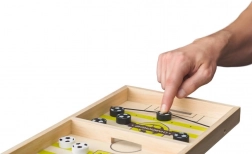 Ta wciągająca gra stołowa oferuje proste zasady i dynamiczną rozgrywkę. Plansza z gumkami po obu stronach wybija żetony przez centralny otwór – wygrywa ten, kto najszybciej prześle wszystkie swoje żetony na pole przeciwnika. Świetny wybór dla dzieci i dorosłych.
