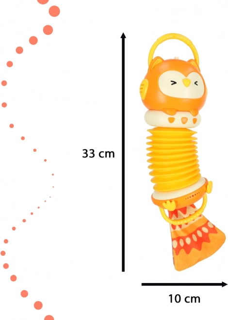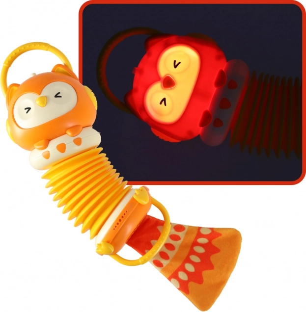 Z tym akordeonem do zabawy dzieci będą się cieszyć godzinami zabawy i rozwijają swoją motorykę oraz muzyczne wyczucie. Jest wyposażony w oświetlenie i głośnik, który doceni mały artysta. W zestawie jest także szelestny ogon, który zainteresuje dzieci i wspiera ich wrażenia dotykowe.
