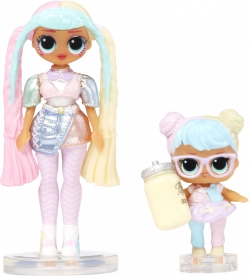 Przedstawiamy CAŁKOWICIE NOWĄ rodzinną kolekcję L.O.L. Surprise MINI! Rozpakuj ulubione postacie fanów. OMG, ich Lil Sis i rodzinne zwierzątko teraz w miniaturowym rozmiarze! Każda mini figurka jest wierną kopią modowej lalki OMG, kolekcjonerskiej lalki LOL Surprise oraz rodzinnego pupilka. Czy znajdziesz słodziutkie i bąbelkowe Candylicious i Bon Bon Fam, czy odkryjesz tęczową Kitty K i jej ekipę?