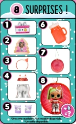 Każda różowa kula oferuje stopniowe odkrywanie 8 niespodzianek, które trzymają dzieci w napięciu od pierwszego zerwania paska aż po ostatni dodatek.
