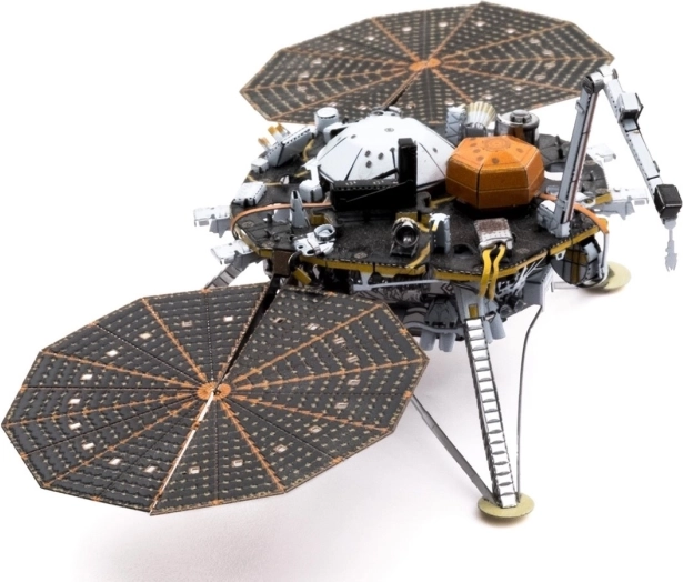 METAL EARTH 3D puzzle InSight Mars Lander to fascynujące wyzwanie konstruktorskie, łączące precyzyjne laserowe grawerowanie z autentycznym wyglądem. Kwadratowe stalowe blaszki zamienią się w stylową dekorację, odpowiednią nie tylko do domu, lecz także do biura czy szkoły.