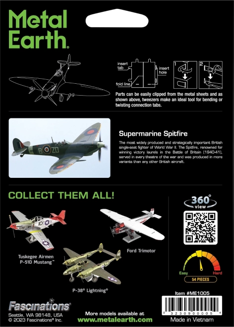 Odkryj urok metalowych puzzli 3D METAL EARTH i zbuduj własny model SUPERMARINE SPITFIRE – legendy II wojny światowej. Z cienkich stalowych blaszek stworzysz szczegółową replikę z precyzyjnymi liniami i autentycznymi grawerunkami. Po złożeniu model znakomicie prezentuje się na półce, biurku lub w tematycznej kolekcji.