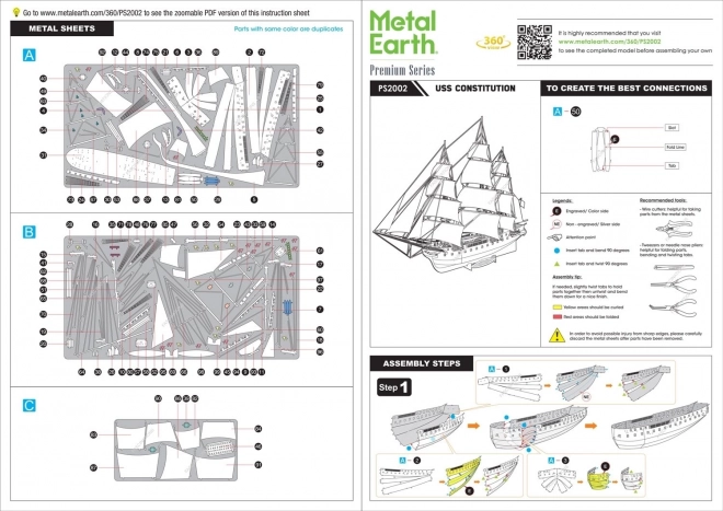 metal earth 3D puzzle premium series: żaglowiec USS Constitution – metalowy model