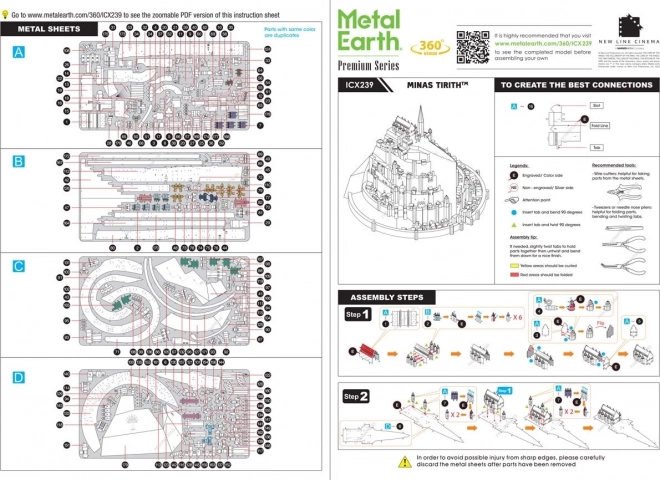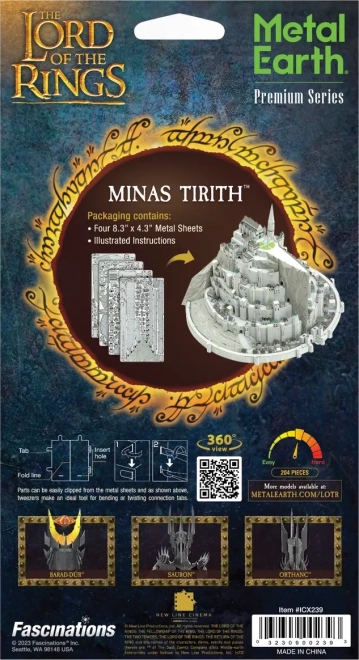 Stwórz zapierającą dech replikę miasta Minas Tirith z uniwersum Władcy Pierścieni. Metalowe puzzle 3D METAL EARTH składają się z precyzyjnie wycinanych stalowych arkuszy z delikatnym grawerowaniem laserowym, które podkreśla każdy architektoniczny detal murów, wież i tarasów.