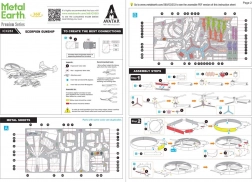 Poszczególne komponenty wyciska się z blaszek i łączy za pomocą zamków z zaczepami – bez kleju. Zalecamy użycie małych cęgów tnących i płaskich pęset/szczypiec do czystych zagięć i precyzyjnego spasowania. Gotowy model ma wymiary ok. 14 × 13,2 × 4,9 cm i świetnie uzupełni kolekcję fanów filmu, techniki sci‑fi i metalowych modeli.