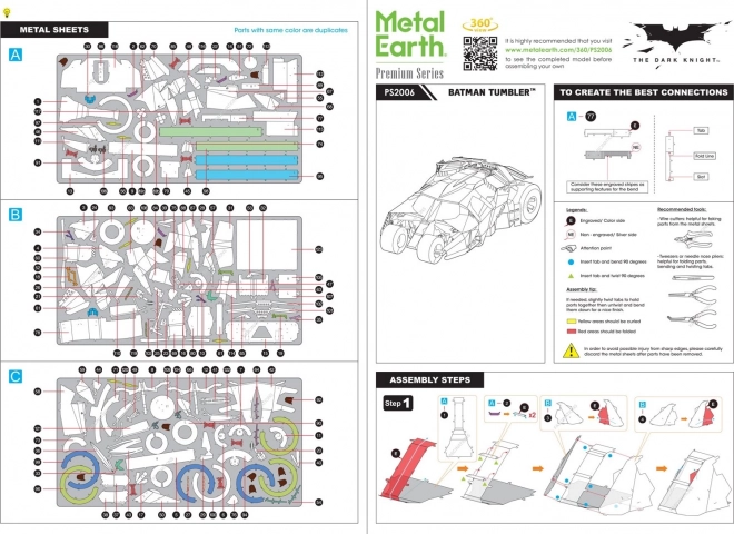 Premium zestaw Metal Earth pozwala złożyć realistyczną metalową replikę legendarnego pojazdu BATMAN Tumbler. Elementy są wycięte z wysokiej jakości stalowych blaszek i zdobione precyzyjnym laserowym grawerowaniem dla maksymalnej autentyczności. Efektem jest trwały i dopracowany model, który zachwyci na półce każdego fana.