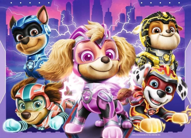 Spraw radość małym fanom PAW Patrol! Ten zestaw 4 puzzli z motywami z wielkiego filmu oferuje żywe kolory, precyzyjne wycięcia i wytrzymałe elementy charakterystyczne dla jakości Ravensburger. Każda układanka po złożeniu ma wymiary około 36 × 26 cm.