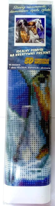 - Kompletny zestaw: płótno z nadrukowanym motywem, kolorowe diamenciki, aplikator, tacka, wosk.