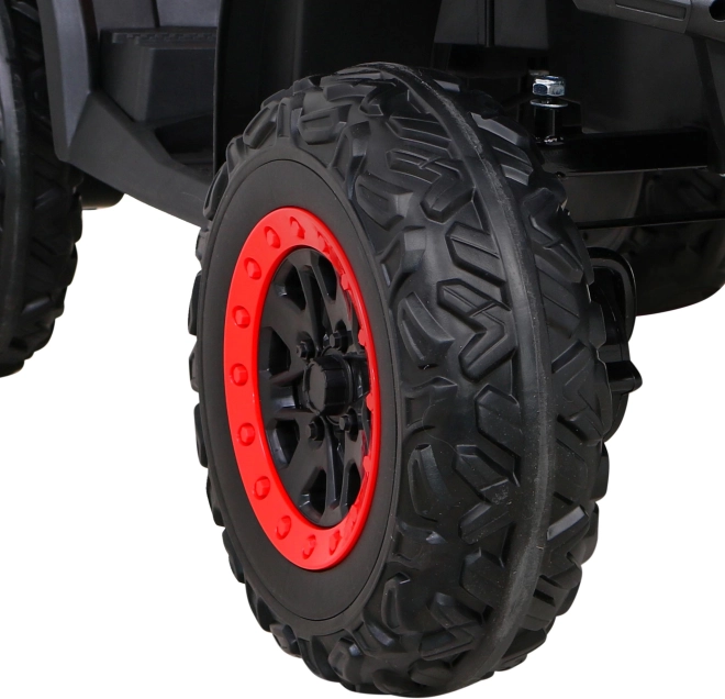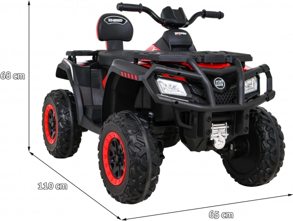 Dzięki wytrzymałej budowie i napędowi 4x4 quad poradzi sobie na nierównym terenie i zapewni godziny bezpiecznej zabawy.