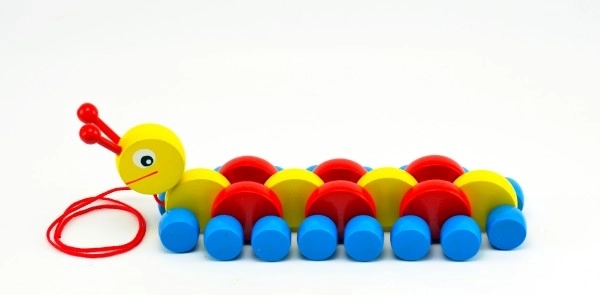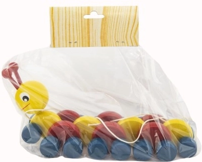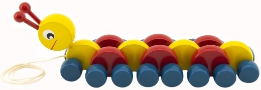 Spraw swoim dzieciom tę kolorową drewnianą gąsienicę, która idealnie wspiera rozwój zdolności motorycznych najmłodszych. Podczas ciągnięcia gąsienica pełznie, dając dzieciom radość z ruchu.