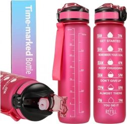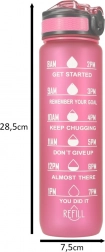 Na boku znajdziesz znaczniki czasu od rana do wieczora z motywacyjnymi hasłami, które poprowadzą Cię do regularnego uzupełniania płynów. Pojemność 1 litr jest idealna na cały dzień w domu, w biurze i na siłowni.