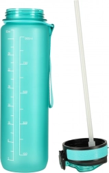 Praktyczna pokrywka z blokadą chroni przed przeciekaniem, a zintegrowana słomka pozwala wygodnie pić w marszu lub podczas ćwiczeń. Butelkę łatwo przenosić, a pojemność 1 litra jest idealna do całodziennego nawadniania.