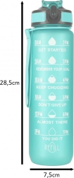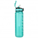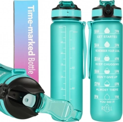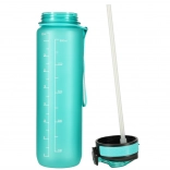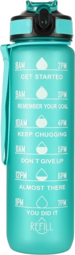 Stylowa butelka na wodę o pojemności 1 l z wytrzymałego materiału Tritan pomaga kontrolować nawodnienie przez cały dzień. Ma praktyczny ustnik ze słomką do wygodnego picia bez przechylania, zabezpieczenie pokrywki przed przypadkowym otwarciem oraz motywacyjne znaczniki czasu, które przypominają o regularnym piciu. Materiał jest bez BPA i dopuszczony do kontaktu z żywnością.