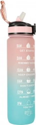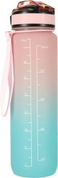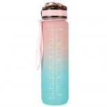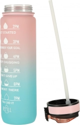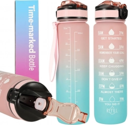 Stylowa 1‑litrowa butelka z Tritanu z przejściem kolorów różowy–niebieski pomaga utrzymać nawodnienie dzięki motywacyjnym oznaczeniom czasowym. Ma odchylane wieczko z blokadą, zintegrowaną rurkę dla wygodnego picia bez przechylania oraz lekki, wytrzymały materiał bez BPA.
