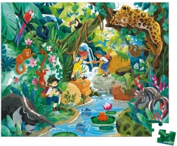 Odkryj zabawne puzzle w walizeczce z motywem dżungli od JANOD. Zestaw zawiera 100 elementów, które po ułożeniu tworzą barwną scenę z ukrytą świątynią. Dzieci podczas układania rozwijają logiczne myślenie, koncentrację, pamięć oraz małą motorykę. Praktyczna walizeczka z materiałową rączką i dołączony plakat jako wzór ułatwiają układanie w domu i w podróży.