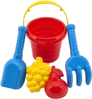 Ten zestaw do piasku zawiera kolorowe wiaderko, łopatkę, grabki i dwie foremki, które idealnie pasują do małych dziecięcych rączek. Wykonane z wysokiej jakości i trwałego plastiku, który zapewnia długą żywotność, nawet podczas intensywnej zabawy w piasku.
