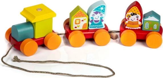 Odkryj CUBIKA Wciągany bajkowy pociąg, który jest czymś więcej niż tylko zabawką. Ten drewniany pociąg zawiera dwie postacie krasnali i składa się z 10 różnokolorowych elementów. Dzieci uczą się rozwijać swoje zdolności manualne poprzez składanie tych elementów.