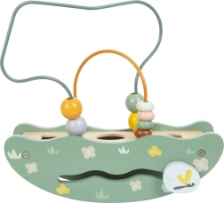 Dzieci mogą przesuwać koraliki po pętelkowych torach, co rozwija ich koordynację i motorykę małą.