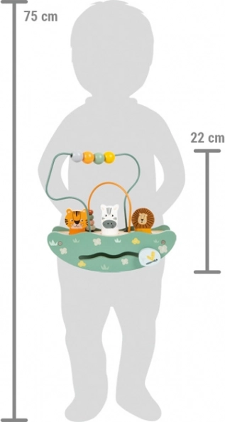 Labirynt jest dodatkowo wzbogacony o zabawną grę z dopasowywaniem trzech figurek zwierząt do odpowiednich kształtów. Wymaga to zręczności i koncentracji. Zintegrowana funkcja bujania zapewnia jeszcze więcej frajdy i możliwości bogatej nauki.