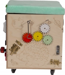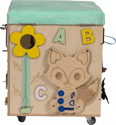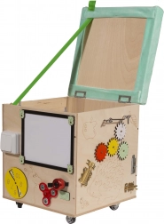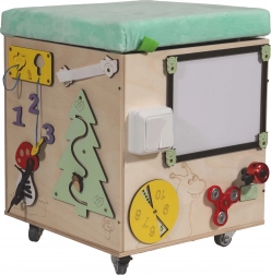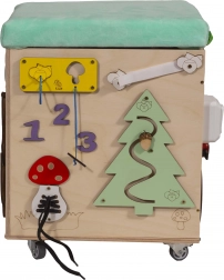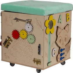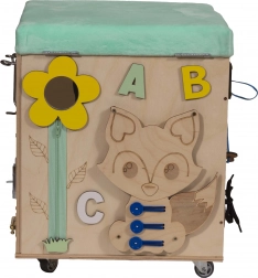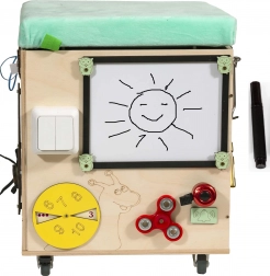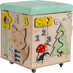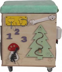 3w1 Montessori kostka manipulacyjna / taboret z siedziskiem i kółkami