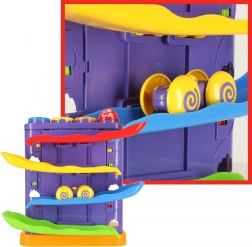 Oddzielny tor dla kulek i osobny dla autka dłużej utrzymują dzieci w ruchu i oferują więcej scenariuszy zabawy.