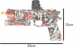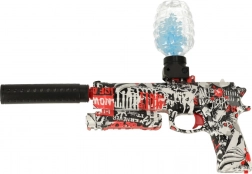 Elektryczny pistolet do zabawy strzela dwoma typami amunicji – piankowymi nabojami oraz hydrożelowymi kulkami. W zestawie znajdują się kulki do samodzielnego przygotowania – należy namoczyć je w wodzie na 3–4 godziny, aby zwiększyły swoją objętość.