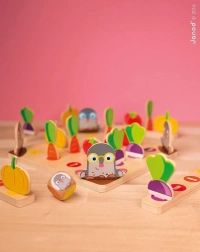 Zabawna drewniana gra rodzinna dla 2–4 graczy od marki JANOD, w której zbieracie plony do koszyka i jednocześnie omijacie krety. Rozwija szybkość, spostrzegawczość, cierpliwość i rozpoznawanie kolorów. Wysokiej jakości drewniane wykonanie, piękne ilustracje i proste zasady czynią z tej gry idealny prezent dla dzieci i dorosłych.